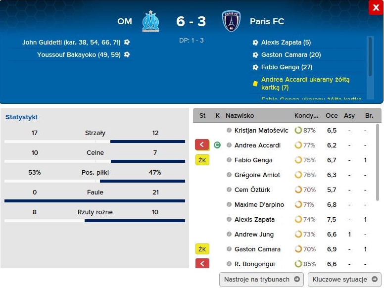 I muszę przyznać, że pierwsze pół godziny było jak najpiękniejszy poemat, nagrodzona Pulitzerem twórczość, zapierający dech w piersiach zbiór wierszy słynnej noblistki. 3:0 było wyraźnym potwierdzeniem ogromnych możliwości Paris FC. Potem jednak wszystko się posypało. Olympique przeprowadził i wykończył sześć swoich akcji, nim na stadionie zabrzmiał końcowy gwizdek. Piłkarze z niedowierzaniem patrzyli po sobie i na tablicę wyników. Ja w tym czasie już szykowałem się na blitzkrieg na konferencji prasowej. Doskonałe znałem cel ataku – był nim grający tego dnia na stoperze Genga.
