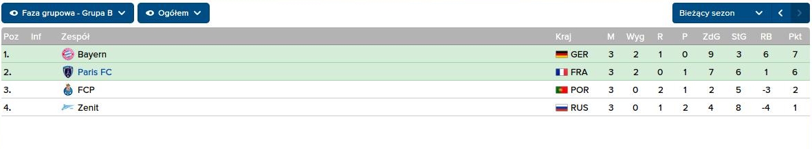 Chyba nawet najwięksi fani Ligue 1 nie przewidywali, że układ tabeli naszej grupy w Lidze Mistrzów po trzech kolejkach będzie tak wyglądać. Bayern na czele z siedmioma oczkami nikogo nie dziwił, ale już obecność Paris FC na drugim miejscu z tylko jednym punktem straty do Bawarczyków była czymś na miarę grubej niespodzianki.