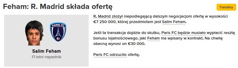 Dzień przed wylotem na losowanie w Nyonie znowu odezwał się Real Madryt. Zastanawiało mnie to zainteresowanie Królewskich Fehamem, który w tym momencie nie stanowił dla nich specjalnego wzmocnienia. Podbili nieco swoją ofertę, ale 7 250 000 euro bez bonusów nadal wyglądało marnie. Musiałem jednak zająć się tematem i pogadać z Salimem, do którego pewnie już dotarły wieści.