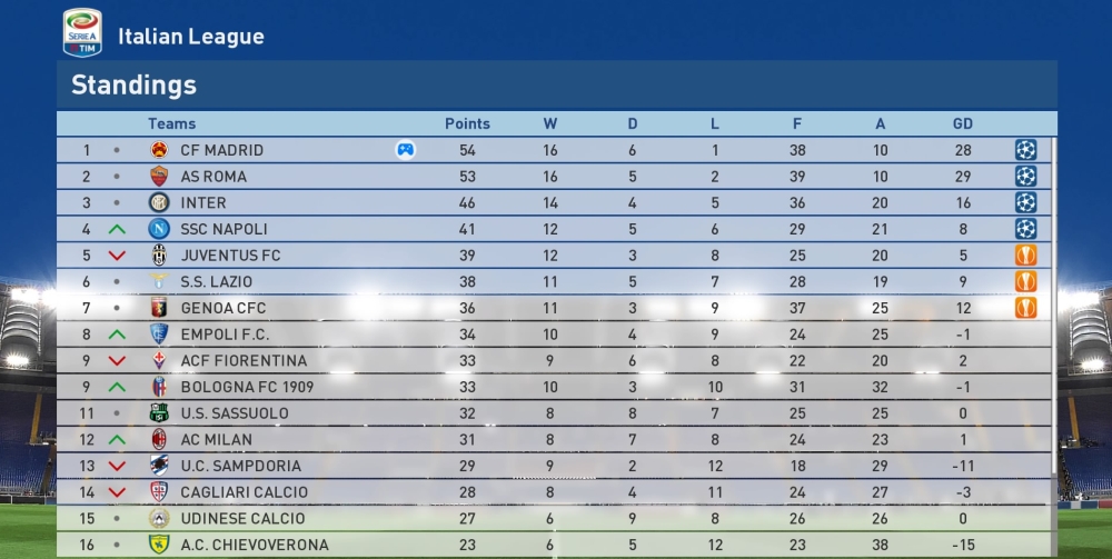 Gdzieś umknęło mi na początku sezonu, gdy z asystentem i szefem skautingu analizowaliśmy terminarz Serie A, że na przełomie roku czeka nas maraton meczów z głównymi konkurentami do tytułu. Mając już jednak za sobą mecze z Interem i Romą oraz za rogiem wyjazd do Neapolu całkiem cieszyłem się, że akurat w takim momencie przyszło CF Madrid toczyć te kluczowe być może boje. W kolejnych miesiącach czeka nas przecież walka o triumf w Lidze Mistrzów, więc łatwiejsi oponenci na krajowym podwórku będą mile widziani.
