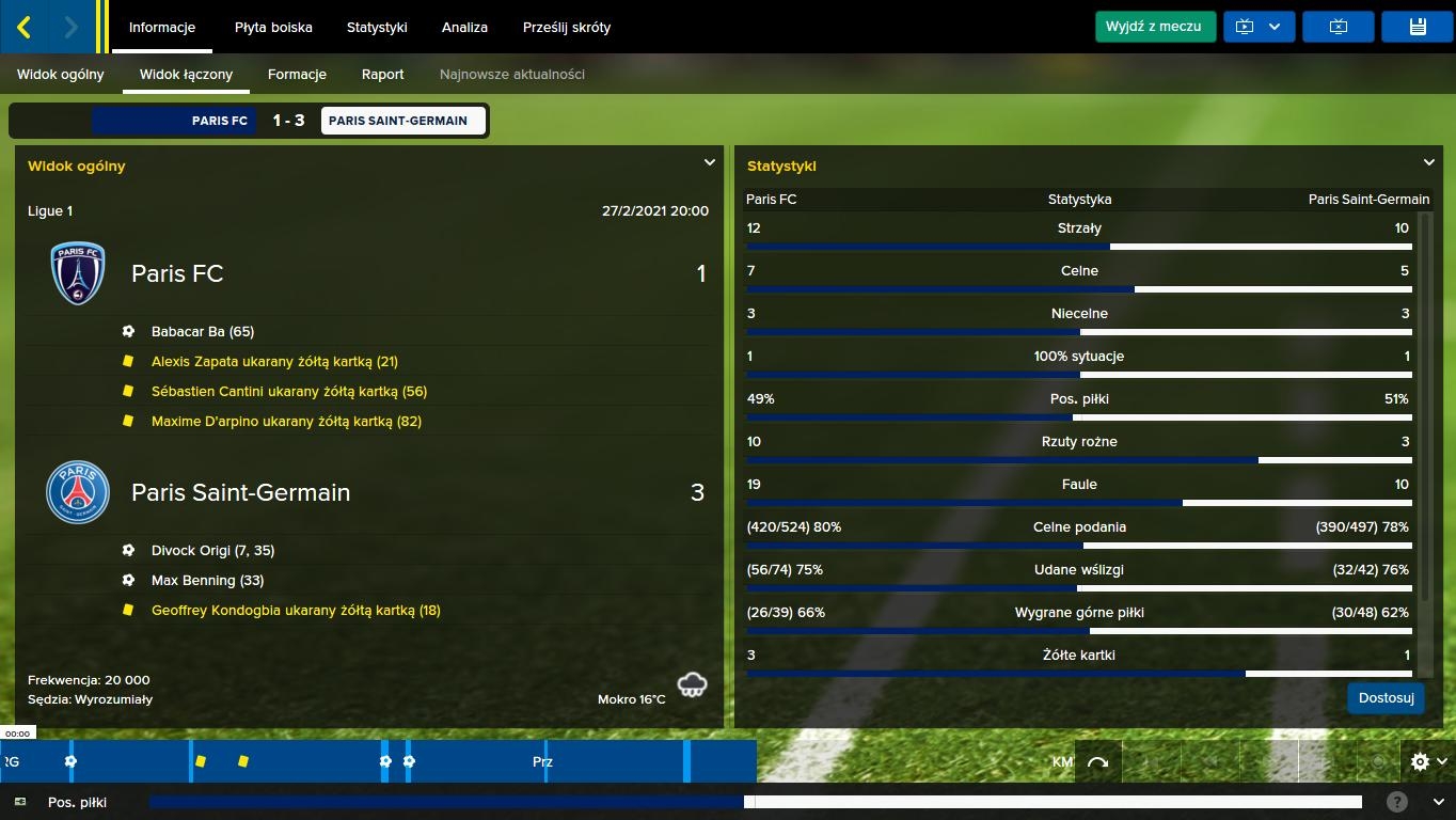O ile do poprzednich konfrontacji derbowych przystępowałem z nadziejami na korzystny rezultat, tak w lutym 2021 roku byłem gotowy z pocałowaniem ręki wziąć remis. Jeden punkt z rozpędzonym liderem, którego sama linia pomocy jest więcej warta niż prowadzony przeze mnie klub z infrastrukturą i oszczędnościami na koncie bankowym łącznie. Trudno, mając takie podejście, zmotywować podopiecznych do wypruwania sobie flaków na boisku za PFC. Porażkę 1:3 na Stade Chariety przyjąłem więc ze spokojem, jako zasłużoną karę za wszystkie popełnione błędy.