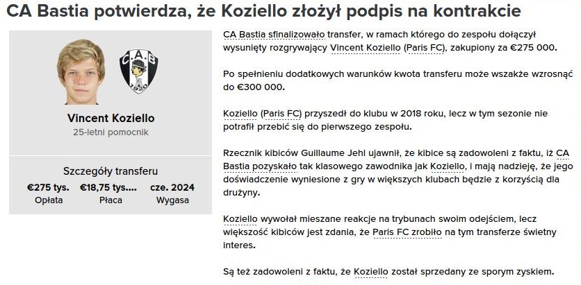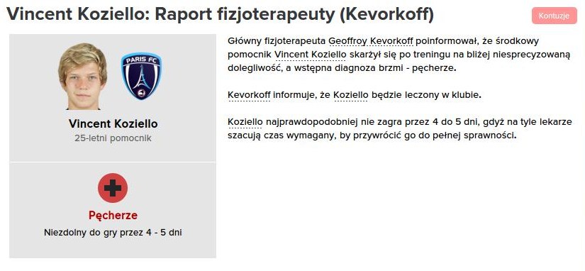 Koziello znalazł zainteresowanego momentalnie, ale opiewająca na kilkaset tysięcy euro oferta była jakimś żartem. Postanowiłem negocjować. Rozmowy szły opornie i nie zdawały się zmierzać do szczęśliwego finału. Wszystko zmienił jednak telefon od fizjoterapeuty, który przekazał mi informację o kolejnym problemie zdrowotnym zawodnika. Były gracz Nicei tym razem narzekał na pęcherze i prosił o kilkanaście dni odpoczynku. Dawno już tak szybko nie klepnąłem transferu z klubu. Na szczęście kupujący się nie wystraszyli.