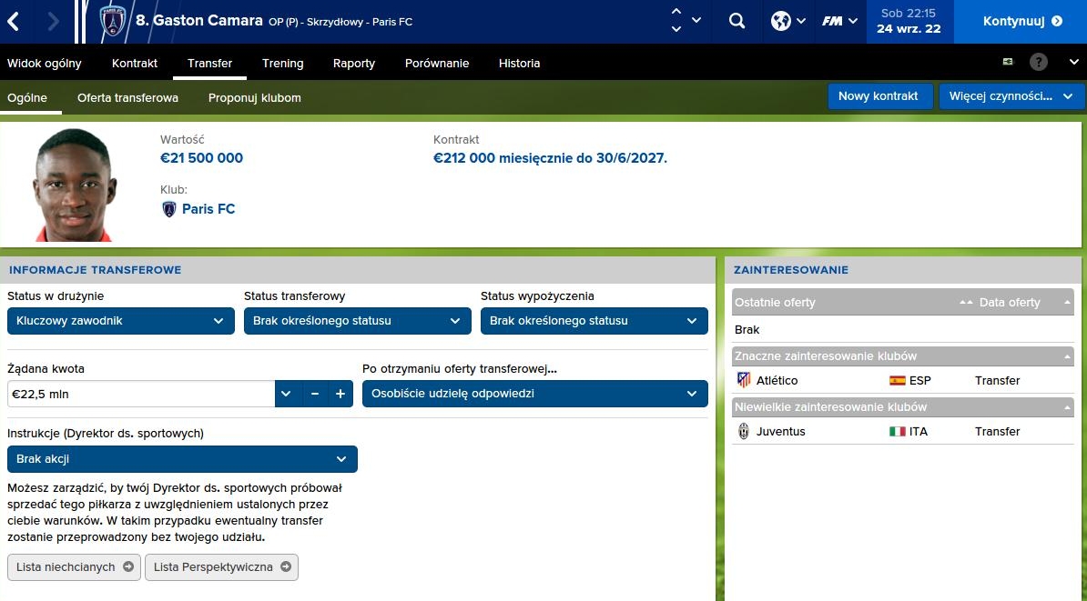 Gaston nie najlepiej zaczął sezon. Kilka anonimowych występów od razu zwróciło moją uwagę. Całe to zamieszanie transferowe robiło swoje i odbijało się na jego psychice. Camarze nie było źle na Stade Chariety, a w każdym razie nic takiego nie sugerował, ale najwyraźniej po cichu coraz częściej myślał o swojej przyszłości. A że takie Atletico czy Juventus wyrażały zainteresowanie, to miał konkretne scenariusze do analizowania. Gol z Metz sprawił, że mogłem jeszcze na chwilę odwlec planowaną rozmowę w cztery oczy. Najgorsze było to uczucie, że być może to ostatni sezon Paris FC w obecnym kształcie. Dembele, Camara, Khaloua, a więc trzej czołowi skrzydłowi nie tylko klubu, ale całej ligi, mogą latem 2023 roku odejść, a bez nich PFC nie będzie już takie samo.