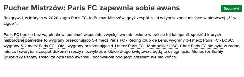 Końcówka rozgrywek ligi francuskiej przyniosła kibicom tradycyjnie już miks doświadczeń przyjemnych i tych z gatunku do zapomnienia. W lidze trochę poremisowaliśmy, ale Lyon był równie nieskuteczny, więc w efekcie trzecie miejsce dla Paris FC stało się faktem. Mamy upragnioną Ligę Mistrzów – wrota do dalszego prężnego rozwoju klubu stoją otworem. Nie udało się niestety potwierdzić możliwości i aspiracji w Pucharze Francji. W półfinale lepsza od mojej drużyny okazała się niżej notowana Nicea, której skromne zwycięstwo na Stade Chariety zapewnił 32-letni Dries Mertens. Jednak czasami warto mieć w składzie jakiegoś ogranego w Europie weterana. Szczególnie przydatni są oni pod koniec sezonu, gdy nadchodzi czas rozstrzygnięć i trzeba często wykazywać się umiejętnościami, grając regularnie pod dużą presją. U nas na razie takich liderów brakowało. Obserwując Khalouę, Ndongalę czy Del Fabbro widziałem jednak, że legendy dopiero się w stolicy Francji tworzą.