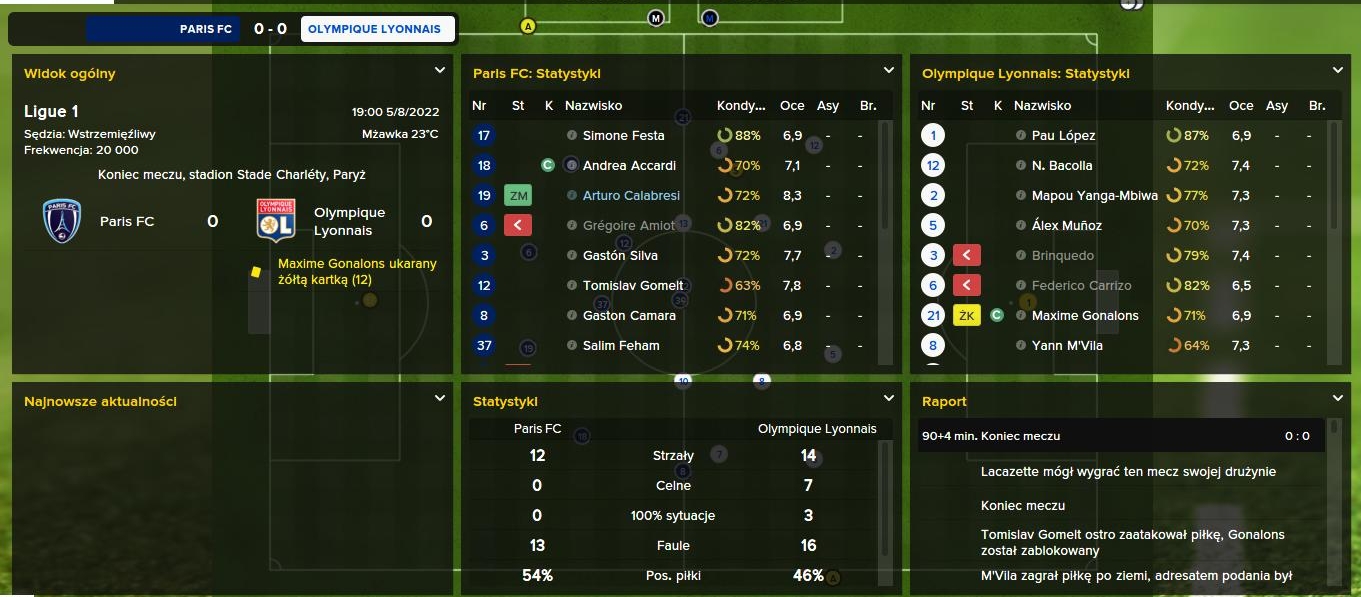Stade Chariety wypełniony po brzegi. Na trybunach dwadzieścia tysięcy fanów, którzy przyszli podziwiać zwycięzców Trophee de Champions w pierwszej batalii o ligowe punkty sezonu 2022/2023. Naprzeciw Paris FC nieobliczalny Olympique Lyon, który liczy na dużo lepszy sezon niż poprzednio.