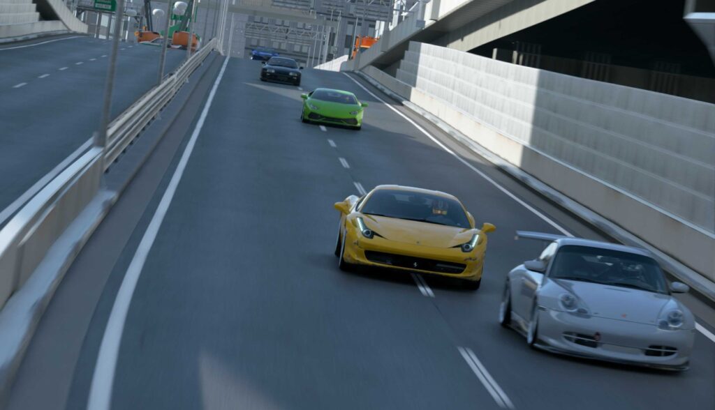 W pucharze samochodów turystycznych 600 zostały dwa wyścigi. Oba na ekspresówce Tokio. Potrzebne jest mi tutaj coś o dużej mocy, co potrafi porządnie się rozpędzić na długich prostych i szybko dohamować przed nawrotami. Próbuję z mercedesem AMG C63, ale choć wypada solidnie, to nie jest w stanie nawet zbliżyć się do prowadzącego Haywooda, którego lamborghini doskonale odpowiada charakterystyce toru.