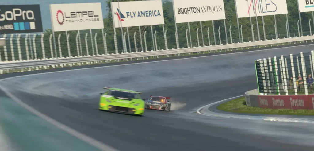 Głupio byłoby zmarnować trzydzieści minut i nie zaliczyć zadania, więc wsiadam do audi R8 LMS Evo. Sprawdzona maszyna, którą wcześniej zdążyłem przetestować w kilku wyścigach grupy 3. Pierwsze okrążenie utwierdza mnie w przekonaniu, że była to dobra decyzja, bo wyprzedzam najwolniejszych konkurentów i zaczynam odrabiać straty do lidera.